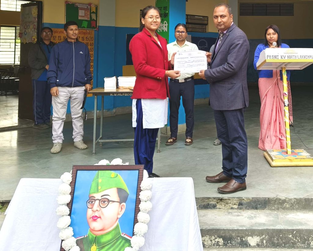 लखीमपुर, 23 जनवरी: पीएम श्री केंद्रीय विद्यालय, उत्तर लखीमपुर ने आज नेताजी सुभाष चंद्र बोस की 128वीं जयंती के अवसर पर पराक्रम दिवस का आयोजन किया। इस कार्यक्रम का उद्देश्य नेताजी के राष्ट्र के प्रति अद्वितीय योगदान का सम्मान करना था। इस अवसर पर “भारत हैं हम” विषय पर एक अंतर-विद्यालयी प्रश्नोत्तरी प्रतियोगिता आयोजित की गई, जिसमें 15 चयनित स्कूलों के 100 छात्रों ने भाग लिया।