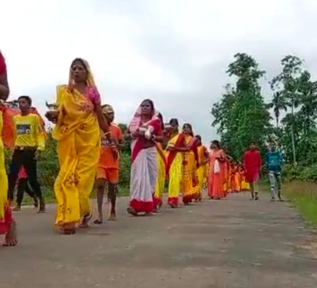 चंद्रशेखर ग्वाला, मासिमपुर,१० जुलाई: घाटी के बड़खोला विधानसभा क्षेत्र के मासिमपुर गांव में, आज सावन के प्रथम सोमवार को, बड़े संख्या में कांवड़ियों ने भगवान शंकरजी को जलाभिषेक किया।आज भोर चार बजे से मासिमपुर बागीचा काली मंदिर में कांवड़ियों की भीड़ इकट्ठा होने लगी, लगभग पांच सौ से अधिक कांवड़ियों ने, काली मंदिर से कांवड़ यात्रा प्रारंभ किया। क्षेत्र के डलु चाय बगान स्थित श्री श्री शिवजी के मंदिर में पहुंच कर शिवजी को जलाभिषेक किया। इस भव्य कांवड़ यात्रा में इलाके के सभी स्तर के पुरुषों, महिलाओं एवं बच्चों ने जातिभेद ,बैर भाव भुलाकर बोल वम के नारे लगाते हुए ,सुबह के वातावरण को प्रफुल्लित कर रहे थे। शिव भक्ति में लीन कांवड़ियों में काफी उत्साह देखा गया। लगभग आठ कि.मी.सड़क पैदल यात्रा कर डलु चाय बगान शिव मंदिर पहुंचे। बड़े बड़े लाउडस्पीकरों से शिव भक्ति गीतों से पुरे ईलाका गुंजायमान हो रहा था। आज के इस कांवड़ यात्रा में पुरुषों के मुकाबले स्त्रियां किशोरी और बच्चों की संख्या अधिक नजर आया। पिछले पांच वर्षों से मासिमपुर बागीचा कांवड़िया समिति द्वारा प्रति वर्ष सावन महीने में कांवड़ यात्रा का आयोजन किया जाता है। डॉ.अमित कलवार ने कांवड़ियों के भीड़ को देखते हुए, उनकी सहायता के लिए कांवड़ यात्रा के साथ एक एंबुलेंस का प्रबंध किये थे। और खुद भी इस कांवड़ यात्रा में शामिल रहे।