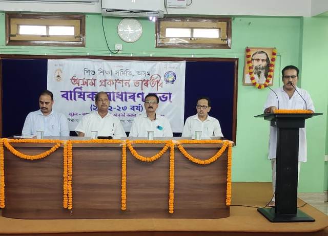 गुवाहाटी, 30 जुलाई 2023|| असम प्रकाशन भारती की वार्षिक साधारण सभा गुवाहाटी में संपन्न हुई। शिशु शिक्षा समिति असम के अध्यक्ष डॉ. दिब्यज्योति महन्त एवं असम प्रकाशन भारती के अध्यक्ष डॉ. विवेकानन्द शर्मा ने ज्ञान की देवी सरस्वती, प्रणवाक्षर ॐ एवं भारत माता के समक्ष दीप प्रज्वलन कर सभा का शुभारम्भ किया। कार्यालय सचिव हितेन प्रसाद गोस्वामी ने दिवंगत आत्माओं को श्रद्धांजलि व्यक्त की। असम प्रकाशन भारती के सचिव दीपांकर बोरा ने सभा की प्रस्तावना रखने के पश्चात गत बैठक की कार्यवाही का पाठ करते हुए वार्षिक प्रतिवेदन प्रस्तुत किया। कोषाध्यक्ष विकास नागपुरिया ने वर्ष 2022-23 की ऑडिट रिपोर्ट एवं वर्ष 2023-24 का बजट प्रस्तुत किया।