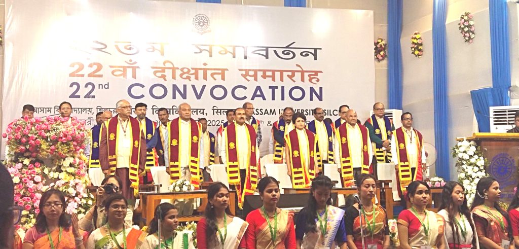शिव कुमार शिलचर, 17 फरवरी 2025 असम विश्वविद्यालय, शिलचर का 22वां दीक्षांत समारोह आज भव्य रूप से संपन्न हुआ। यह आयोजन नेताजी सुभाष मंच पर आयोजित किया गया, जिसमें विश्वविद्यालय के हजारों छात्र-छात्राओं, संकाय सदस्यों, अभिभावकों, शिक्षाविदों और विशिष्ट अतिथियों ने भाग लिया। समारोह के दौरान विभिन्न संकायों के मेधावी छात्रों को उपाधियाँ और पदक प्रदान किए गए, जिन्होंने अपने अध्ययन काल में उत्कृष्ट प्रदर्शन किया।इस अवसर पर छात्रों के लिए यह क्षण अत्यंत गौरवशाली रहा, क्योंकि उन्होंने अपनी शैक्षणिक यात्रा के सफल समापन पर विश्वविद्यालय से स्नातक, परास्नातक और शोध उपाधियाँ प्राप्त कीं। समारोह का माहौल अत्यंत उत्साहपूर्ण और प्रेरणादायक था, जिसमें छात्रों के साथ-साथ उनके माता-पिता और अभिभावकों के चेहरों पर भी खुशी और गर्व की झलक दिखाई दी।इस ऐतिहासिक अवसर पर विश्वविद्यालय ने भारत के प्रतिष्ठित सैन्य और शैक्षणिक जगत की जानी-मानी हस्तियों को आमंत्रित किया था। समारोह में मुख्य अतिथि के रूप में लेफ्टिनेंट जनरल साधना एस. नायर, वीएसएम (महानिदेशक, चिकित्सा सेवा – सेना एवं वरिष्ठ कर्नल कमांडेंट, आर्मी मेडिकल कॉर्प्स, रक्षा मंत्रालय, भारत सरकार, नई दिल्ली) उपस्थित थीं।इस समारोह की अध्यक्षता एयर चीफ मार्शल (सेवानिवृत्त) श्री अरूप रहा, पीवीएसएम, एवीएसएम, वीएम, एडीसी ने की। उनके साथ विशिष्ट अतिथि एयर मार्शल (सेवानिवृत्त) श्री के.पी. नायर, एवीएसएम भी इस कार्यक्रम में उपस्थित थे।