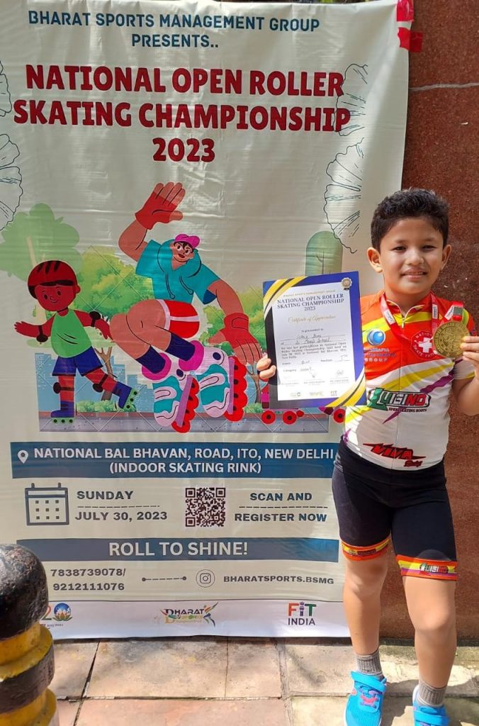 दुमदुमा प्रेरणा भारती 30 जुलाई : दुमदुमा के आजाद रोड के निवासी सुरजीत बोरा एवं द्रिष्मिता बोरा के पुत्र तथा दिल्ली के सेंट मेरिज स्कूल के चतुर्थ कक्षा के छात्र आकार बोरा ने दिल्ली के राष्ट्रीय बाल भवन में आयोजित अंडर 9 के नेशनल ओपन स्केटिंग चैंपियनशिप 2023 के प्रथम स्थान प्राप्त कर स्वर्ण पदक अर्जित किया है।