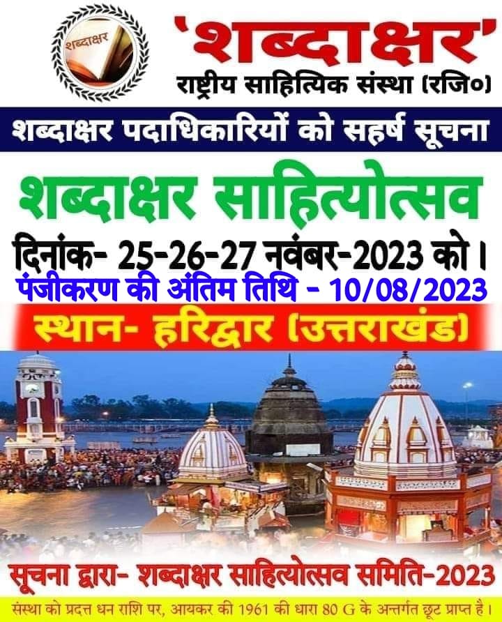 शब्दाक्षर हरिद्वार साहित्योत्सव-2023″ में देश के 25 प्रदेशों के शब्दाक्षर पदाधिकारी लगायेंगे साहित्य-गंगा में डुबकी