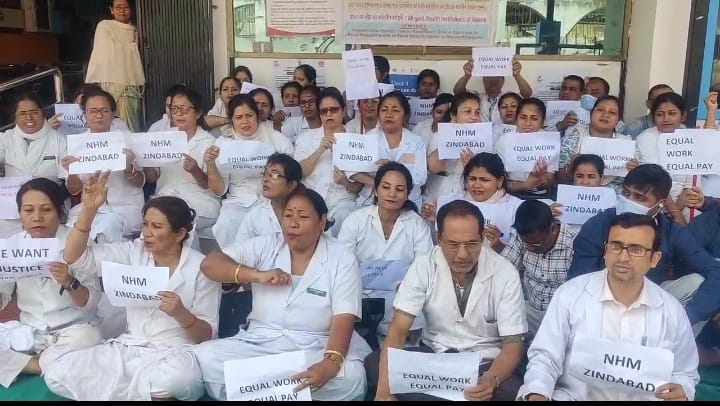 गुवाहाटी 6 मार्च(हि.स.)। राष्ट्रीय स्वास्थ्य मिशन (एनएचएम) के तहत कार्यरत स्वास्थ्यकर्मियों ने स्थायी नौकरी और न्यायसंगत अधिकारों की मांग को लेकर गुरुवार को राजधानी के पांडु बोरीपारा एफआरयू मेडिकल कैंपस के सामने जोरदार विरोध प्रदर्शन किया। एनएचएम कर्मचारियों ने अपनी विभिन्न मांगों को लेकर इस आंदोलन में भाग लिया। प्रदर्शनकारियों का आरोप है कि कोविड महामारी के दौरान उन्होंने फ्रंटलाइन वॉरियर के रूप में महत्वपूर्ण भूमिका निभाई थी, फिर भी उनकी नौकरियां अभी तक स्थायी नहीं की गई हैं। वे लंबे समय से अनुबंध आधारित नियुक्ति पर काम कर रहे हैं।