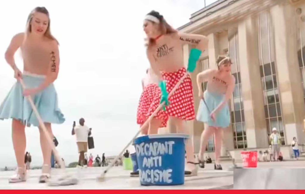 एफिल टॉवर के सामने महिलाओं ने टॉपलेस होकर फासीवाद के खिलाफ लगाए नारे