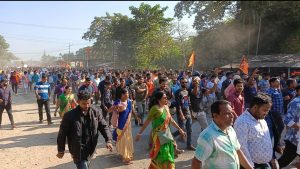 प्रेरणा प्रतिवेदन श्रीभूमि, 1 दिसंबर 2024: सनातनी एक्य मंच द्वारा आयोजित ऐतिहासिक “चलो बांग्लादेश” आंदोलन ने पूरे देश में हलचल मचा दी है। यह आंदोलन आज सुबह 10:30 बजे करीमगंज कॉलेज परिसर से एक विशाल बाइक रैली के साथ शुरू हुआ, जिसमें 2,000 से अधिक बाइक शामिल हुईं और यह सुतारकांडी बॉर्डर पर समाप्त हुआ। 12:00 बजे, आंदोलन का मुख्य कार्यक्रम शुरू हुआ, जिसमें 60,000 से अधिक लोग एकत्रित हुए।