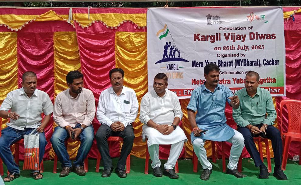 शिलचर,जुलाई 2025:कारगिल युद्ध के वीर शहीदों को श्रद्धांजलि देने और युवाओं में देशभक्ति की भावना को प्रोत्साहित करने के उद्देश्य से ‘मेरा युवा भारत (MY भारत), कछार इकाई’ के तत्वावधान में और स्वैच्छिक संगठन नेताजी छात्र युवा संघ के सहयोग से शिलचर के तारापुर स्थित ईएनडी कॉलोनी के कारगिल विजय स्मारक प्रांगण में कारगिल विजय दिवस का भव्य आयोजन किया गया।