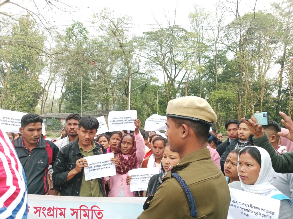 दुमदुमा प्रेरणा भारती 3 मार्च :– तिनसुकिया जिला के दुमदुमा राजस्व चक्राधिकारी कार्यालय के सामने आज कृषक मुक्ति संग्राम और तामुली गांव के लोगों ने अपनी मांगों के लेकर विरोध प्रदर्शन किया। बाढ एवं भू – कटाव से विध्वंस तामुली गांव की जनता के पुनः संस्थापन , क्षतिपूर्ति की मांग को लेकर तामुली गांव के सैकड़ों लोगों और कृषक मुक्ति संग्राम ने विरोध प्रदर्शन किया। साथ ही आवंटित विकास निधि पूंजी द्वारा पुरना तामुली गांव के वनस्पति उद्यान और परियोजना में घटित भ्रष्टाचार की उचित जांच की भी मांग की ।कृषक मुक्ति संग्राम के केन्द्रीय सांगठनिक सचिव ऊमानन्द मुदै मोरान के साथ तामुली गांव के सैकड़ों जनता ने विरोध प्रदर्शन में शामिल हुए।