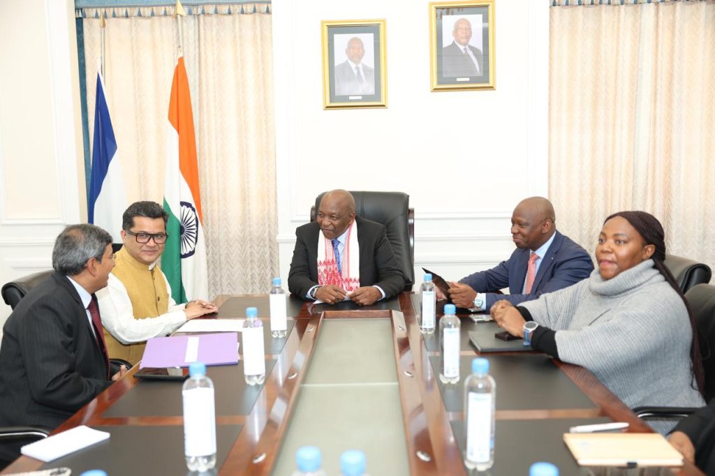 नई दिल्ली/मासेरु: भारत के केंद्रीय विदेश राज्य मंत्री श्री पबित्र मार्घेरिटा ने हाल ही में अफ्रीकी राष्ट्र लेसोथो की आधिकारिक यात्रा की। इस दौरान उन्होंने राजधानी मासेरु में लेसोथो के महाराजा लेत्सी तृतीय और प्रधानमंत्री सेमुएल मातेकेने से शिष्टाचार मुलाकात की।