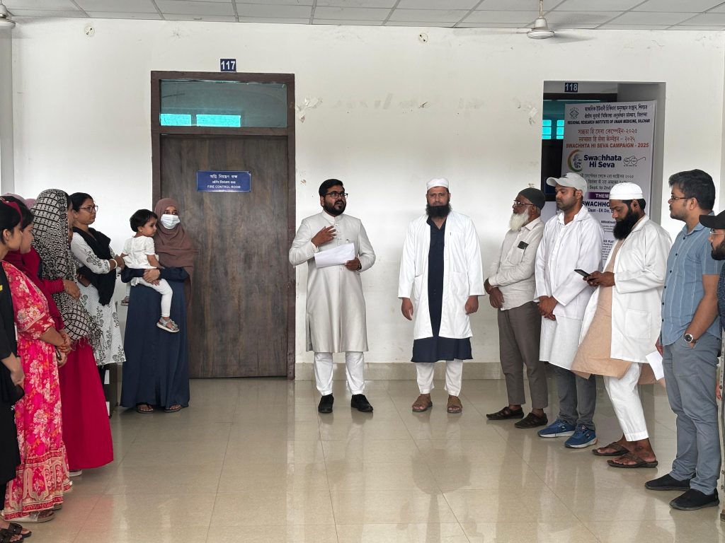 क्षेत्रीय यूनानी चिकित्सा अनुसंधान संस्थान, सिलचर में आज “सम्मान के साथ वृ़द्धावस्था (Ageing with Dignity)” पहल के अंतर्गत एक प्रतिज्ञा ग्रहण कार्यक्रम का आयोजन डॉ. नाज़िम हुसैन के दिशा-निर्देशन में किया गया। यह कार्यक्रम संस्थान के सभी अधिकारियों एवं कर्मचारियों की उपस्थिति में दोपहर 12:30 बजे सम्पन्न हुआ।
