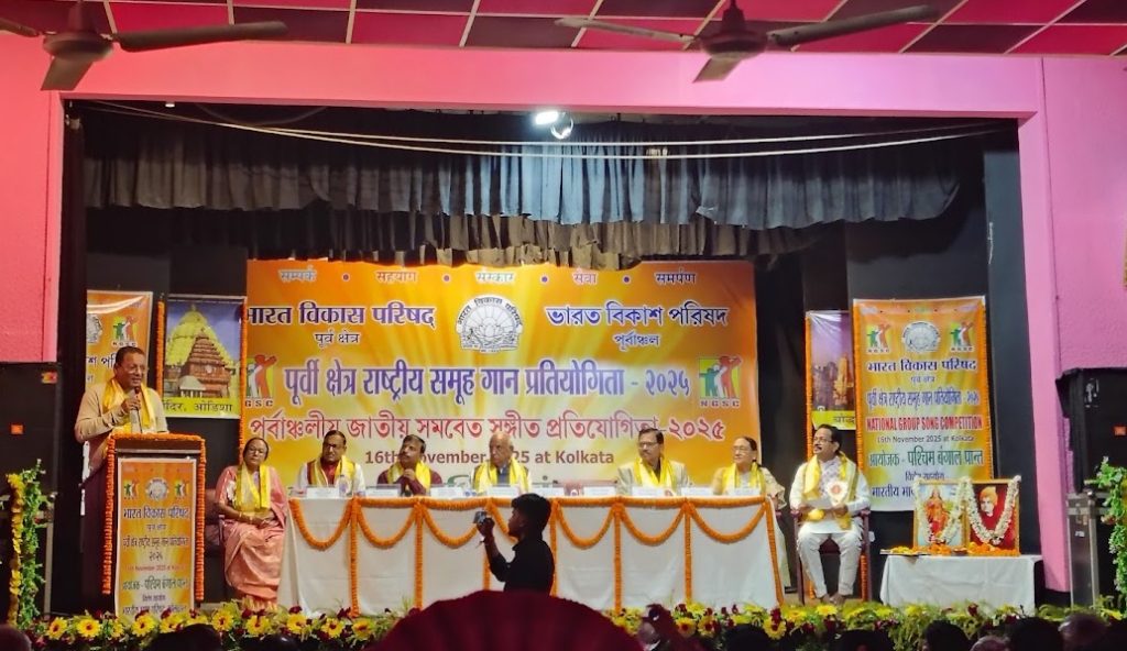 कोलकाता, 19 नवंबर 2025: भारत विकास परिषद द्वारा आयोजित राष्ट्रीय समूह गान प्रतियोगिता (एनजीएससी) के पूर्वी क्षेत्रीय दौर का कोलकाता के भारतीय भाषा परिषद ऑडिटोरियम में अत्यंत उत्साह और देशभक्ति के साथ सफल समापन हुआ। क्षेत्र के 7 विद्यालयों के छात्रों ने इसमें भाग लिया और भावपूर्ण देशभक्ति गीतों के माध्यम से राष्ट्र के प्रति अपने समर्पण का शानदार प्रदर्शन किया। भारत विकास परिषद पिछले 58 वर्षों से इस प्रतियोगिता का आयोजन कर रही है, जिससे लाखों युवा छात्रों को भारत की सांस्कृतिक विरासत और राष्ट्रीय गौरव का उत्सव मनाने के लिए प्रेरणा मिलती रही है। इस वर्ष का कोलकाता क्षेत्रीय आयोजन भी जीवंत प्रस्तुतियों और व्यापक भागीदारी के साथ इस परंपरा को आगे बढ़ाता रहा।