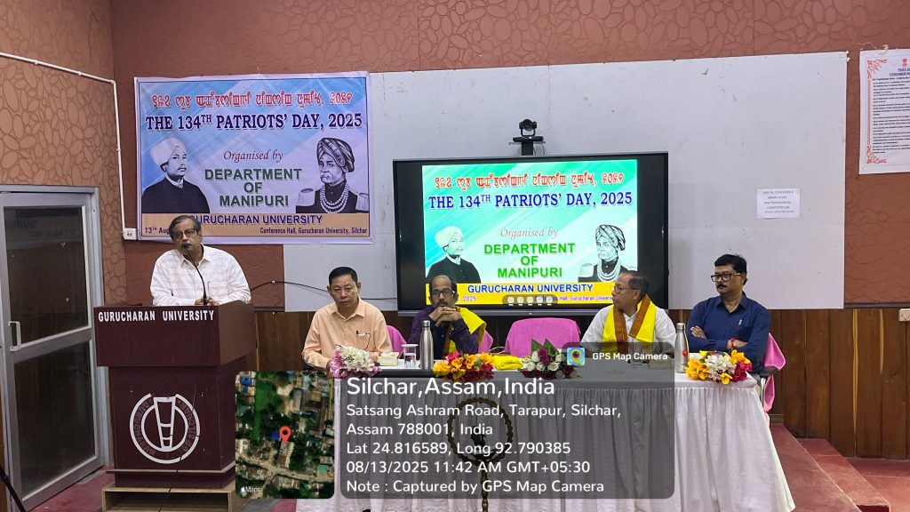 गुरुचरण विश्वविद्यालय में 134वां देशप्रेमी दिवस श्रद्धा व गरिमा के साथ सम्पन्नशिलचर, 13 अगस्त — गुरुचरण विश्वविद्यालय में बुधवार को 134वां देशप्रेमी दिवस बड़े ही श्रद्धा और सम्मान के साथ मनाया गया। विश्वविद्यालय सभागार में आयोजित इस कार्यक्रम में कुलपति प्रो. निरंजन राय, कुलसचिव डॉ. विद्युतकांति पाल, शैक्षिक कुलसचिव डॉ. अभिजीत नाथ, परीक्षा नियंत्रक डॉ. एल. जॉयचंद्र सिंह तथा मुख्य अतिथि के रूप में साहित्य अकादमी मणिपुरी भाषा सलाहकार परिषद के सदस्य डॉ. के. नयनचंद सिंह उपस्थित रहे।
