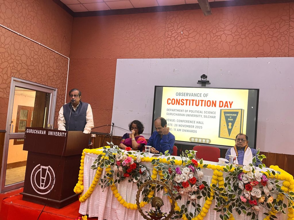 सिलचर, 27 नवंबर: गुरुचरण विश्वविद्यालय के राजनीति विज्ञान विभाग ने बुधवार को विश्वविद्यालय के कॉन्फ्रेंस हॉल में 11वां संविधान दिवस पूरे सम्मान के साथ मनाया।