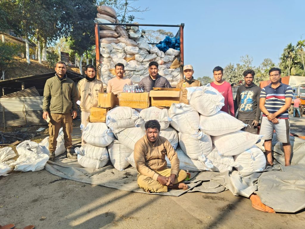 चुराइबारी निगरानी चौकी के प्रभारी प्रणब मौली ने अपनी टीम के साथ तलाशी अभियान का नेतृत्व किया। लॉरी से तिल की बोरियों के पीछे छिपाए गए कार्टन में करीब 2,000 फेंसिडिल की बोतलें बरामद की गईं, जिनकी काला बाजारी कीमत लगभग 20 लाख रुपये आंकी गई है।