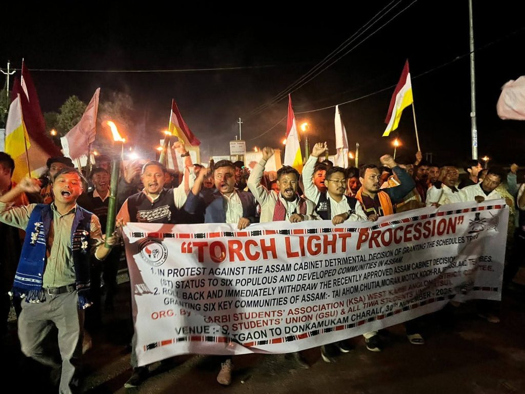 कार्बी स्टूडेंट्स एसोसिएशन (केएसए), गारो स्टूडेंट्स यूनियन (जीएसयू), ऑल तिवा स्टूडेंट्स यूनियन (एटीएसयू) सहित कई आदिवासी छात्र संगठनों के बैनर तले सैकड़ों छात्र-छात्राओं ने डांका के सातगांव में विशाल मशाल जुलूस निकाला और जोरदार नारेबाजी की।