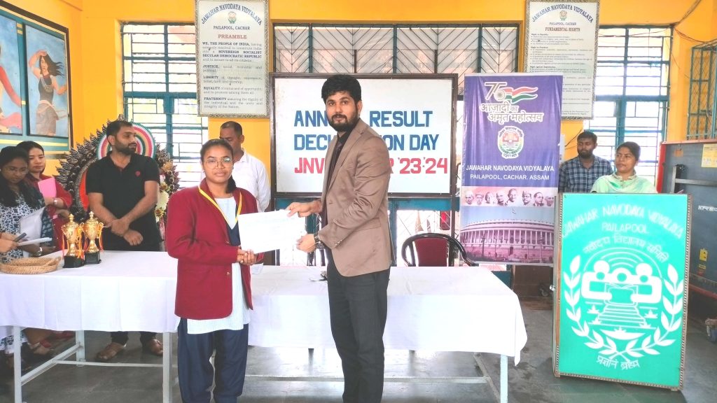 लखीपुर ३१ मार्च : जवाहर नवोदय विद्यालय, पैलापूल ने शिक्षा क्षेत्र में उत्कृष्टता की नई ऊँचाइयों को साकार किया है। इस संस्थान ने 31 मार्च 2024 को कक्षा 6, 7, 8, 9 और 11 के परिणामों की घोषणा की। परीक्षा परिणाम घोषणा को एक समारोह के रूपमें मनाया गया। इस अवसर पर इस अवसर पर विद्यालय के अध्ययनरत सभी छात्रों के अभिभावक उपस्थित थे । कार्यक्रम की शुरुआत प्राचार्य श्री विश्वास कुमार द्वारा दीप प्रज्वलन करके की गई । इस समारोह में प्रत्येक कक्षा के शीर्ष तीन विजेताओं को पुरस्कृत किया गया, जो सत्र 2023 – 24 में शैक्षणिक उत्कृष्टता का परिचय दिया हैं। पूरे सत्र में शैक्षणिक शैक्षणिक गतिविधियों के अतिरिक्त पाठ्य सहगामी क्रियो का भी आयोजन किया जाता है इस शैक्षणिक सत्र में कल 67 पाठ्य सहगामी क्रियो की गतिविधियों का आयोजन किया गया इन गतिविधियों में श्रेष्ठ प्रदर्शन करने वाले विद्यार्थियों को भी पुरस्कृत किया गया। विभिन्न अंतर सदनात्मक प्रतियोगिताओं में विजेता सदन सदन प्रभारियों को पुरस्कृत किया गया । इस वर्ष अरावली सदन प्रथम स्थान तथा उदयगिरि सदन द्वितीय स्थान पर रहे। आपको अवगत करा दे की जवाहर नवोदय विद्यालय में विभिन्न सदनों का अलग-अलग नाम है यहां चार सदन होते है बालक एवम् बालिका वर्ग के सदनों का नाम अरावली, नीलगिरी, उदयगिरि और शिवालिक के नाम से जाने जाते है। अलग-अलग सदनों के अलग-अलग प्रभारी होते हैं जिम रह रहे बच्चों के संपूर्ण सुरक्षा एवं शैक्षणिक गतिविधियों का दायित्व सदन प्रभारी के ऊपर होता है । समारोह में विद्यार्थियों के साथ उनके अभिभावकों और परिवार के सदस्यों ने भी भाग लिया था। प्राचार्य श्री विश्वास कुमार प्रथम द्वितीय एवम् तृतीय तथा पूरे विद्यालय में प्रथम स्थान प्राप्त करने वाले को पुरस्कृत किया तथा उनकेअभिभावकों को भी सम्मानित किया। कक्षा छठवीं “ब” की मोनिका नाथ को प्रथम स्थान, कक्षा छठवीं “अ”की अरबिना सिन्हा को द्वितीय स्थान, कक्षा छठवीं “अ ” की तनीशा नाथ को तृतीय स्थान मिला । कक्षा सातवी “अ” के सादिया चौधरी को प्रथम स्थान,कक्षा सातवी “ब” के देवोज्योति दास को द्वितीया स्थान तथा कक्षा सातवी “ब” के मलेंगांबा सिन्हा को तृतीय स्थान प्राप्त हुआ। कक्षा आठवीं”ब” की सीमा दास को प्रथम स्थान, आशीष दास को द्वितीया स्थान तथा जय दास को तृतीय स्थान प्राप्त हुआ। कक्षा नवीं “अ “के कृपेश दास प्रथम, अरूप दास द्वितीय तथा जुमना कवासर लस्कर को तृतीय स्थान मिला। ग्यारहवीं विज्ञान वर्ग में नूर नेहर बेगम बरभुइया को प्रथम, रुचिका दास द्वितीय तथा संजय बनिया को तृतीय स्थान प्राप्त हुआ। कक्षा ग्यारहवीं कला वर्ग की पोम्पी दास को प्रथम, ए अनुपमा देवी को द्वितीय तथा अंकिता दास को तृतीय स्थान प्राप्त हु