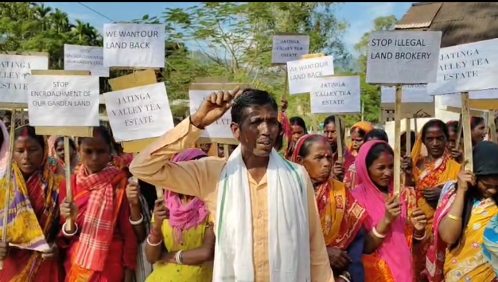 प्रे.स., काछार, 03 दिसंबर: जाटिंगा वैली चाय बागान के अंतर्गत कातलाछड़ा क्षेत्र के चाय श्रमिकों ने बुधवार को जोरदार विरोध प्रदर्शन किया और जमीन विवाद को लेकर आगामी चुनाव में वोट बहिष्कार की चेतावनी दी। श्रमिकों का आरोप है कि न्यू टिबोंग और दुर्गाछड़ा चाय बागान की भूमि पर अचानक खासी जयंतिया डेवलपमेंट काउंसिल कार्यालय के निर्माण के लिए शिलान्यास कर दिया गया, जो बागान की जमीन पर सीधा अतिक्रमण है।