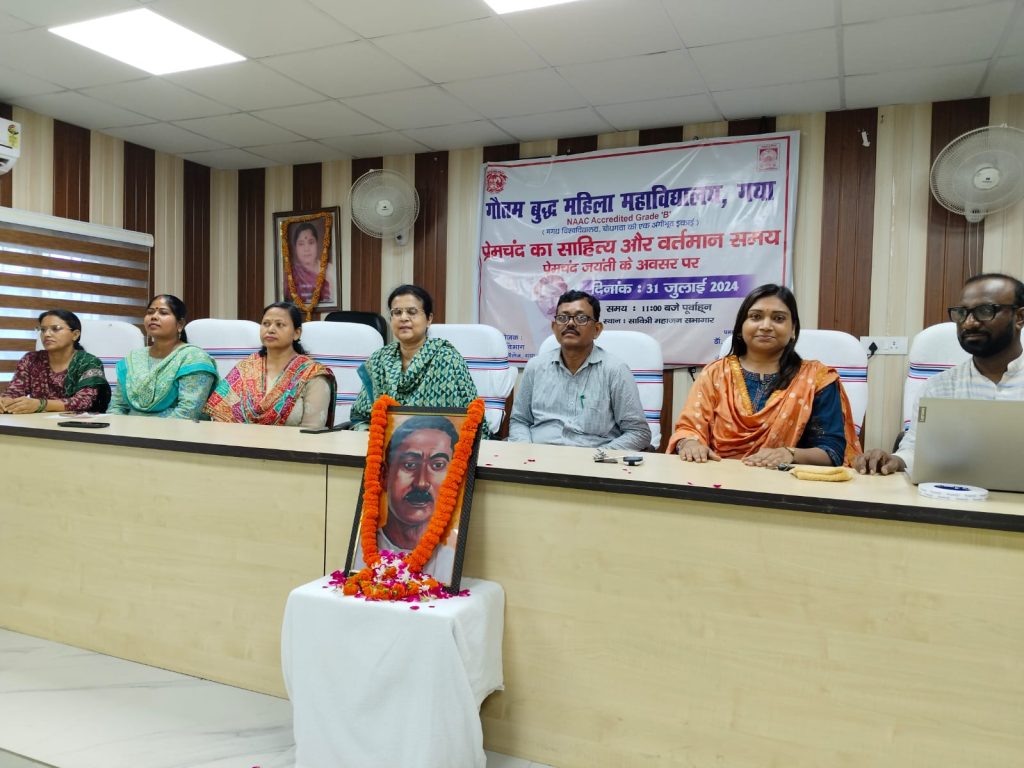 गया, 31 जुलाई: गौतम बुद्ध महिला कॉलेज में उपन्यास सम्राट मुंशी प्रेमचंद की 144 वीं जयंती पर हिन्दी विभाग की ओर से एक लघु-संगोष्ठी का आयोजन किया गया, जिसका शुभारंभ कॉलेज के प्रभारी प्रधानाचार्य डॉ सहदेब बाउरी, हिन्दी विभाग के अध्यक्ष डॉ प्यारे माँझी, डॉ सुनीता कुमारी एवं डॉ सुरबाला कृष्णा, राजनीतिशास्त्र विभागाध्यक्ष डॉ शगुफ्ता अंसारी, अंग्रेजी विभागाध्यक्ष डॉ. कुमारी रश्मि प्रियदर्शनी, गृहविज्ञान विभागाध्यक्ष डॉ. प्रियंका कुमारी एवं उपस्थित छात्राओं ने मुंशी प्रेमचंद के छायाचित्र पर माल्यार्पण तथा पुष्पार्पण करके किया। कार्यक्रम के संयोजक डॉ. माँझी ने लघु-संगोष्ठी के विषय ‘प्रेमचंद का साहित्य एवं वर्तमान समय’ पर अपने सारगर्भित विचार रखे। उन्होंने छात्राओं को प्रेमचंद की जीवनी और कृतियों से परिचित करवाया।