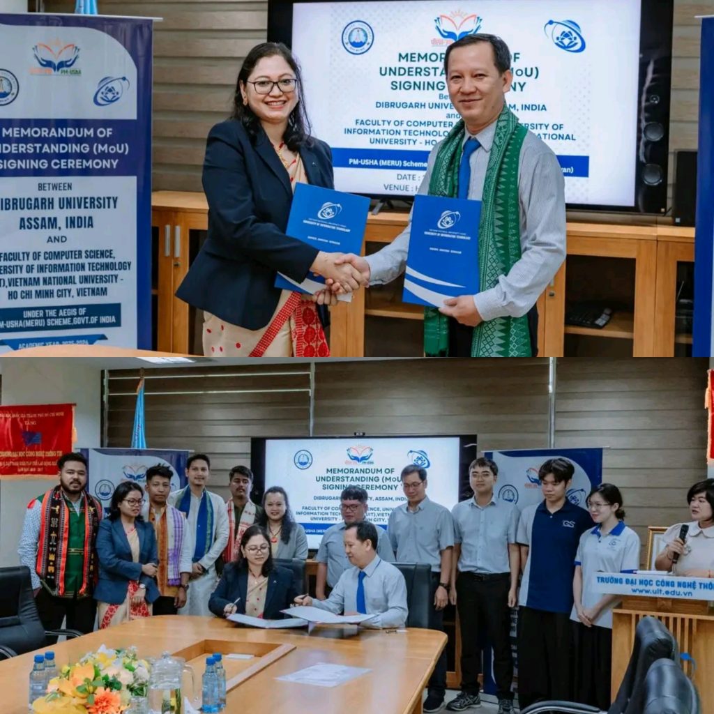 डिब्रूगढ़: अंतर्राष्ट्रीय शैक्षणिक सहयोग की दिशा में एक ऐतिहासिक कदम उठाते हुए, डिब्रूगढ़ विश्वविद्यालय ने वियतनाम के सूचना प्रौद्योगिकी विश्वविद्यालय – वीएनयू-एचसीएम (यूआईटी) के कंप्यूटर विज्ञान संकाय के साथ एक समझौता ज्ञापन (एमओयू) पर हस्ताक्षर किए हैं। इस समझौते पर औपचारिक रूप से पीएम-यूएसएचए (एमईआरयू) पहल के तहत हस्ताक्षर किए गए, जिसका प्रतिनिधित्व डिब्रूगढ़ विश्वविद्यालय के कंप्यूटर विज्ञान एवं इंजीनियरिंग विभाग की प्रमुख डॉ. नोमी बरुआ ने किया।