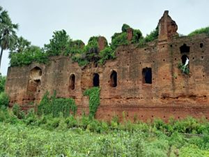 मुगलों ने 1636 में किले पर हमला कर उसे ध्वस्त कर दिया। राजा रुद्र प्रताप सिंह ने आत्मसमर्पण से इनकार किया, जिसके कारण उन्हें मृत्यु दंड दिया गया। किले के बचे हुए भग्नावशेष आज भी पतली ईंटों, चूने की दीवारों और उत्कृष्ट नक्काशी के प्रमाण हैं। किले का बेस कछुए के आकार में है जो अपने भीतर कई रहस्य समेटे है—कहा जाता है कि यहां एक भूल-भुलैया भी थी, जिसके ‘नाक कटा’ की कहानी प्रसिद्ध है। लोग कहते हैं, इसके द्वार पर जलता दीप दिल्ली से दिखाई देता था।