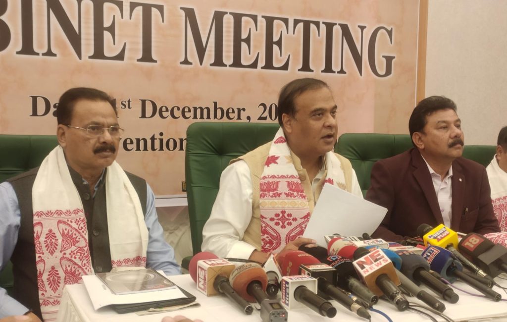 तिनसुकिया दुमदुमा प्रेरणा भारती 1 दिसंबर-असम के मुख्यमंत्री डॉ हिमंत विश्व शर्मा दो दिवसीय विभिन्न कार्यक्रमों के तहत शुक्रवार को तिनसुकिया में उपस्थित हुये।जिसमे उनकी अगुवाई में तिनसुकिया में पहली बार असम सरकार की कैबिनेट बैठक संपन्न हुई।तिनसुकिया वासियों के लिए यह ऐतिहासिक छन था,जब तिनसुकिया के गेलापोखरी बाईपास रोड स्थित कन्वेंशन सेंटर असम सरकार की पहली कैबिनेट बैठक आयोजित हुई।इस बैठक में असम सरकार के सभी कैबिनेट मंत्री उपस्थित हुये।जिसमे मंत्री संजय किशान,अतुल बोरा,रनुज पेगु,जोगेन मोहन,पीयूष हजारिका,जयंत मल्लब बरुआ,रंजीत दास,बिमल बोरा,अजंतानेउग,परिमल शुक्ल बैद्य,चन्द्र मोहन पटवारी अशोक सिंघल सहित सभी मंत्री उपस्थित थे।2 बजे से 5 बजे तक चले कैबिनेट की बैठक में कई महत्वपूर्ण फैसले लिये गये।जिसमे तिनसुकिया जिले के लिये कई सौगात दिये जाने के साथ ही तिनसुकिया विधानसभा क्षेत्र हेतु सौगातों की बौछार मुख्यमंत्री डॉ हिमंत विश्व शर्मा ने की।कैबिनेट बैठक के बाद पत्रकार सम्मेलन को संबोधन करते हुये मुख्यमंत्री ने कैबिनेट बैठक में लिये गये फैसले को साझा किया।तिनसुकिया कैबिनेट बैठक में कई महत्वपूर्ण फैसले लिए गये।