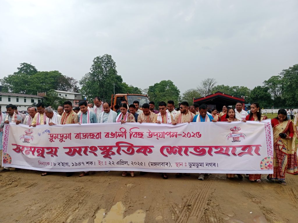 अपने वक्तव्य में मंत्री रूपेश ग्वाला ने विभिन्न जाति समुदाय के लोगों इस कार्यक्रम में शरीक होने पर खुशी जाहिर की और आशा व्यक्त की कि एकता और भाईचारे की सौहार्द पूर्ण माहौल एक मिसाल कायम करेगी। नगर की परिक्रमा करते हुए विशाल जुलूस में कई संगठनों ने भी भाग लिया।बौद्ध बिहार समिति, ,रुपाई साइडिंग के तपोवन महिला समिति, फिलोबाड़ी न-गांव देउरी महिला समिति, रुपाई देउरी महिला समिति,गोरखा सम्मेलन ,रामकृष्ण सेवाश्रम, बृहत्तर दुमदुमा भोजपुरी समाज , दुमदुमा मारवाड़ी युवा मंच, दुमदुमा अंचल के सात मस्जिद कमेटी तथा दुमदुमा मदरसा कब्रिस्तान और ईदगाह समिति दुमदुमा असमिया नाट्य मंदिर ,दुमदुमा नामघर समिति, दुमदुमा गुरुद्वारा समिति, ई रिक्शा संस्था के अलावा विभिन्न जाति समुदाय के लोग उपस्थित थे। आज शाम को सांस्कृतिक संध्या कार्यक्रम के साथ तीन दिवसीय रंगाली