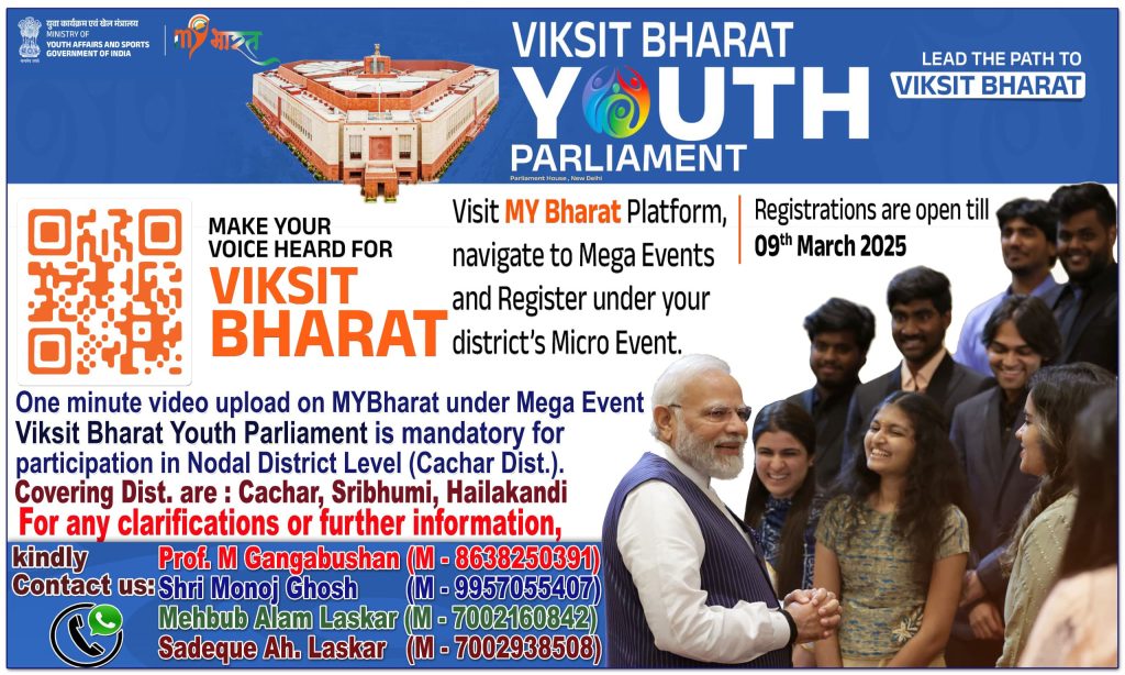 प्रे.स. शिलचर, 7 मार्च: विकसित भारत युवा संसद राष्ट्रीय चर्चाओं में शामिल होने और विकसित भारत@2047 के दृष्टिकोण को आकार देने के लिए युवा आवाज़ों के लिए एक मंच है। यह नेतृत्व, नागरिक भागीदारी और नीतिगत चर्चाओं को बढ़ावा देता है, जिससे छात्रों को प्रमुख राष्ट्रीय मुद्दों पर विचार-विमर्श करने में सक्षम बनाया जाता है।