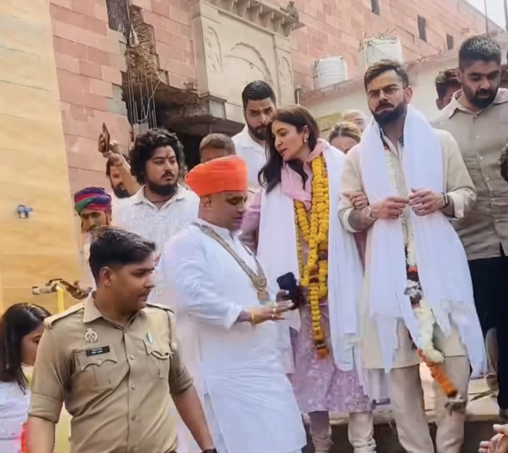 हनुमानगढ़ी में विराट कोहली और अनुष्का शर्मा को वरिष्ठ पुजारी हेमंत दास ने दर्शन-पूजन कराया। मंदिर के पुजारी ने उन्हें फूल माला पहनाया और टीका लगाया। विराट-अनुष्का के पूजा-अर्चना का वीडियो भी सोशल मीडिया पर खूब वायरल हो रहा है। दर्शन के दौरान स्टार कपल ने मीडिया से दूरी बनाई रखी।