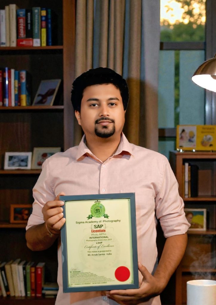 डिब्रूगढ़: डिब्रूगढ़ के पत्रकार और फ़ोटोग्राफ़र अर्नब शर्मा ने एक गौरवपूर्ण क्षण में अंतर्राष्ट्रीय फ़ोटोग्राफ़िक सम्मान अर्जित किया है, जो उनकी रचनात्मक यात्रा में एक महत्वपूर्ण मील का पत्थर है। हैदराबाद स्थित सिग्मा अकादमी ऑफ़ फ़ोटोग्राफ़ी ने उन्हें “लाइसेंसिएट ऑफ़ सिग्मा अकादमी ऑफ़ फ़ोटोग्राफ़ी (L.SAP)” का विशिष्ट सम्मान प्रदान किया है, जो असाधारण कौशल, कलात्मक अभिव्यक्ति और पेशेवर उत्कृष्टता प्रदर्शित करने वाले फ़ोटोग्राफ़रों को प्रदान की जाने वाली एक अंतर्राष्ट्रीय मान्यता है।