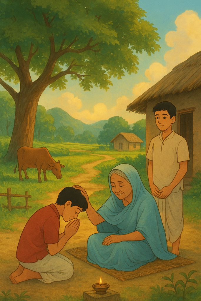 उनके घर में भले ही धन न था, पर संतोष, स्नेह और संसार की सबसे बड़ी दौलत — माँ का आशीर्वाद था।