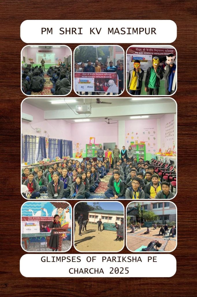 प्रेरणा प्रतिवेदन शिलचर, 22 जनवरी: पीएम श्री केन्द्रीय विद्यालय मासिमपुर में 12 जनवरी से 23 जनवरी 2025 तक परीक्षा पे चर्चा 2025 के तहत शृंखलाबद्ध गतिविधियों का आयोजन किया गया। इस आयोजन का मार्गदर्शन उप आयुक्त पी.आई.टी. राजा (के. वि. संगठन संभाग शिलचर) और विद्यालय के प्रधानाचार्य हरपाल ग्रोवर द्वारा किया गया।