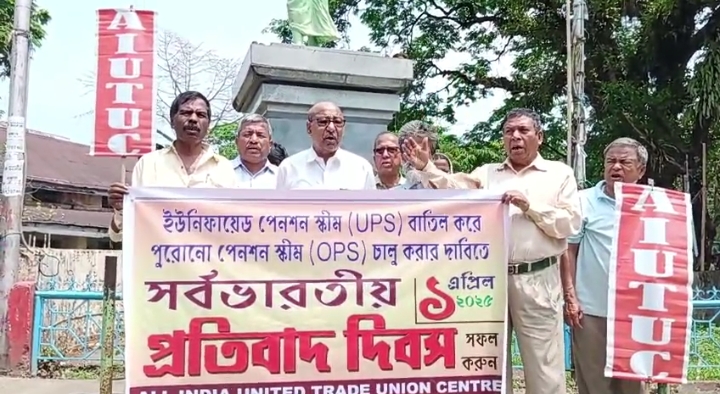 सुबह 11:30 बजे के करीब संगठन के जिला समिति के सदस्यों ने वहां एकत्र होकर “यूनिफाइड पेंशन स्कीम बंद करो, पुरानी पेंशन स्कीम लागू करो” जैसे नारे लगाए। इस मौके पर जिला समिति के अध्यक्ष सुब्रत चंद्र नाथ ने कहा कि देशभर के श्रमिक और कर्मचारी लंबे समय से नई पेंशन योजना (NPS) को समाप्त करने की मांग कर रहे थे, जिसके दबाव में केंद्र सरकार को इसे वापस लेना पड़ा। लेकिन इसके स्थान पर सरकार ने यूनिफाइड पेंशन स्कीम लागू कर दी, जो श्रमिकों और कर्मचारियों के लिए पहले से भी अधिक प्रतिकूल है।