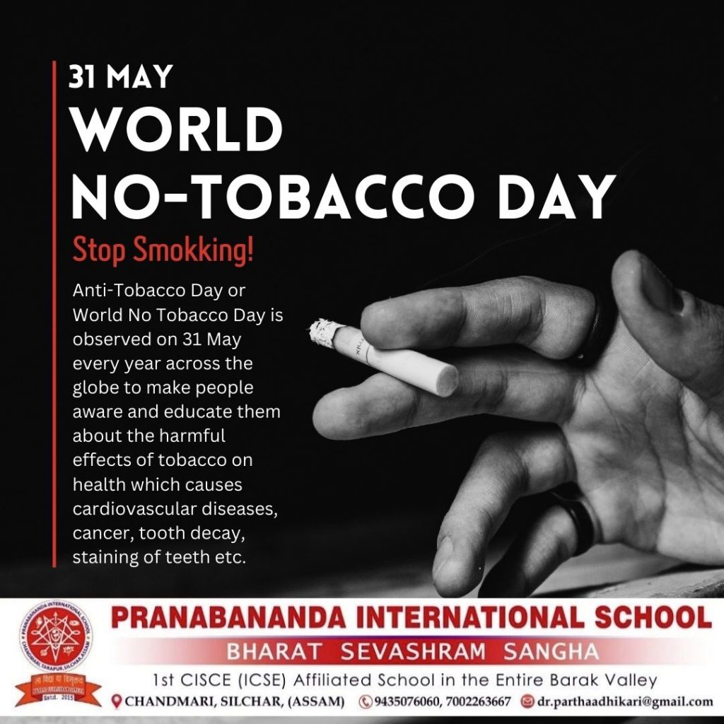 ३१ मई, २०२४ सिलचर – प्रणबानंद इंटरनेशनल स्कूल, सिलचर ने तंबाकू के उपयोग के खतरों और तंबाकू उद्योग के हस्तक्षेप से बच्चों की सुरक्षा के बारे में जागरूकता बढ़ाने के उद्देश्य से विश्व तंबाकू निषेध दिवस का ऑनलाइन आयोजन किया। स्कूल के प्राचार्य, डॉ. पार्थ प्रदीप अधिकारी ने इस वर्चुअल सभा को संबोधित करते हुए युवाओं को तंबाकू उद्योग की धोखाधड़ी से बचाने के महत्व पर जोर दिया।