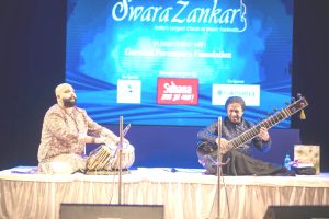 प्रे.स., शिलचर, 14 फरवरी: पुणे के प्रतिष्ठित संगीत संस्थान स्वरझंकार और शिलचर के गुरुकुल परंपरा फाउंडेशन के संयुक्त तत्वावधान में बंगभवन में एक भव्य शास्त्रीय संगीत संध्या का आयोजन किया गया। इस संगीतमय संध्या का शुभारंभ स्वरझंकार के प्रतिनिधि तेजस उपाध्याय और गुरुकुल परंपरा फाउंडेशन के दीपक बक्सी एवं सुतपा बक्सी ने दीप प्रज्वलित कर किया।