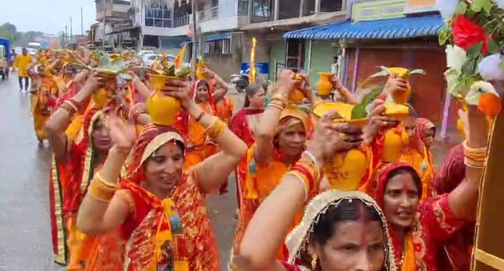 आज प्रथम दिन, स्थानीय छठ घाट से भव्य कलश यात्रा निकाली गई। सैकड़ों की संख्या में सुसज्जित महिलाओं ने सिर पर पवित्र कलश लेकर गाजे-बाजे के साथ मंदिर तक पदयात्रा की। यात्रा में बिहू नृत्य दलगायन-बायन मंडली और अन्य सांस्कृतिक झांकियों ने शोभा यात्रा को और भी आकर्षक बना दिया।