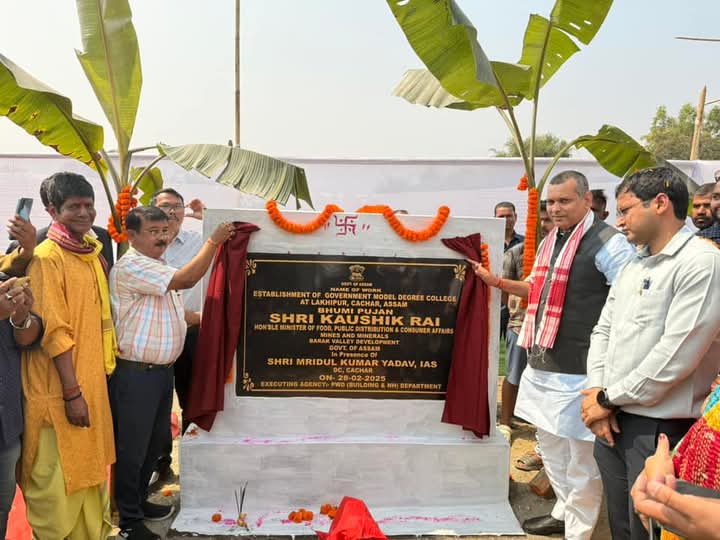 चंद्रशेखर ग्वाला लखीपुर, 28 फरवरी: लखीपुर क्षेत्र के बिन्नाकांदी विकास खंड के छोटा-मामदा गांव पंचायत में,विन्नाकांदी माडल डिग्री कालेज का अनुष्ठानिक भुमि पुजन हुआ। राज्य के खाद्य सुरक्षा,खान एवं खनिज तथा बराक घाटी विकास विभाग के मंत्री कौशिक राय ने, आज लखीपुर विधानसभा क्षेत्र में, विन्नाकांदी माडल डिग्री कालेज का भूमि पुजन किया। मंत्री के साथ कछाड़ जिले के जिला आयुक्त मृदुल यादव ने भी भूमि पुजन किया।