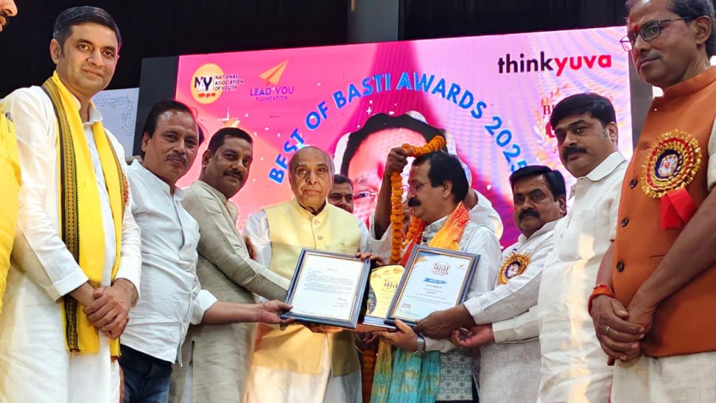 भोपाल,11 अप्रैल। वरिष्ठ पत्रकार और मीडिया शिक्षक प्रो.संजय द्विवेदी को उनके गृहनगर बस्ती (उत्तर प्रदेश) में ‘बेस्ट आफ बस्ती अवार्ड्स’ से सम्मानित किया गया। उन्हें यह सम्मान उत्तर प्रदेश के पूर्व मुख्यमंत्री और वक्फ बोर्ड के लिए गठित जेपीसी के अध्यक्ष रहे जगदम्बिका पाल ने प्रदान किया। इस अवसर पर विधान परिषद सदस्य संतोष सिंह, समाजवादी पार्टी के पूर्व विधायक राजमणि पाण्डेय, पूर्व विधायक संजय जायसवाल तथा कार्यक्रम के संयोजक भावेश पाण्डेय उपस्थित रहे।