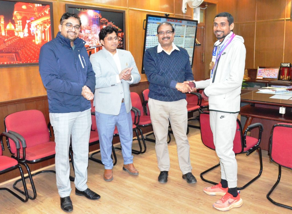 इस दौरान अजय कुमार सरोज की इस उपलब्धी पर प्रसन्नता व्यक्त करते हुए मंडल रेल प्रबंधक विनीत कुमार श्रीवास्तव अपने कार्यालय में सम्मानित कर बधाई दी । इस अवसर पर वरिष्ठ मंडल वाणिज्य प्रबंधक शेख रहमान,वरिष्ठ मंडल कार्मिक अधिकारी एवं क्रीड़ा अधिकारी समीर पॉल एवं अन्य मंडलीय अधिकारियों ने भी बधाई दी है।