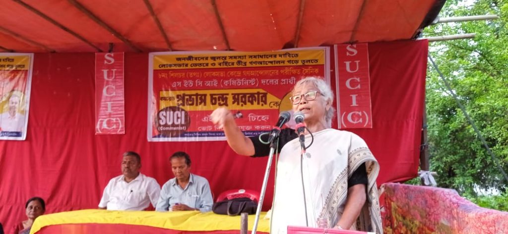 राज्य सचिव और केंद्रीय समिति सदस्य जननेत्री चंद्रलेखा दास ने आज एसयूसीआई (कम्युनिस्ट) पार्टी के सिलचर लोकसभा सीट के उम्मीदवार प्रभास चंद्र सरकार के समर्थन में सिलचर में खुदीराम मूर्ति के पास आयोजित चुनावी सभा को संबोधित किया।  पार्टी के पूर्व जिला सचिव श्यामदेव कुर्मी की अध्यक्षता में आयोजित चुनावी सभा को सबसे पहले पार्टी प्रत्याशी प्रभास चंद्र सरकार ने संबोधित किया. मुख्य वक्ता चंद्रलेखा दास ने कहा कि राज्य में हजारों शैक्षणिक संस्थानों को बंद करना, राज्य के स्वामित्व वाले उद्योगों कछार पेपर मिल, नागांव पेपर मिल आदि को बंद करना, राज्य के 27 लाख नागरिकों के आधार कार्ड को रोकना, ध्वस्त करना। लंबे समय से रह रहे लोगों के घरों पर बिना एनकाउंटर के बुलडोजर चला देना, लोगों को मुकदमे में मार देना डबल इंजन की भाजपा सरकार की उपलब्धि है।  उन्होंने कहा कि वैश्वीकरण नीति, गैट समझौते के माध्यम से शिक्षा, स्वास्थ्य, रेलवे, बिजली, बीमा, बैंकों के निजीकरण की प्रक्रिया कांग्रेस ने शुरू की, भाजपा इसे तेज गति से आगे बढ़ा रही है।  उन्होंने कहा कि देश का पूंजीपति वर्ग सेवादास कांग्रेस, भाजपा, तृणमूल कांग्रेस व अन्य दल भ्रष्टाचार मुक्त होकर अपनी सुख-समृद्धि हासिल करने तथा पूंजीपतियों के शासन को मजबूत करने के लिए चुनाव लड़ रहे हैं.  उन्होंने कहा कि चुनाव से लोगों की समस्याएं हल नहीं होती बल्कि दिन-ब-दिन आम किसान, मजदूर और मेहनतकश लोग कंगाल और खाली होते जाते हैं.  उन्होंने कहा कि जन आंदोलन से लोगों की समस्याओं का समाधान संभव है.  उन्होंने कहा कि एसयूसीआई (कम्युनिस्ट) पार्टी जन आंदोलन की परखी हुई ताकत है।  उन्होंने एसयूसीआई (कम्युनिस्ट) पार्टी के उम्मीदवार के चुनाव का आह्वान किया।  चुनावी सभा में पार्टी के जिला सचिव भवतोष चक्रवर्ती, प्रोफेसर अजय रॉय, सुब्रत चंद्र नाथ, लक्षीचरण अकुरा, दुलाली गांगुली समेत अन्य मौजूद थे.