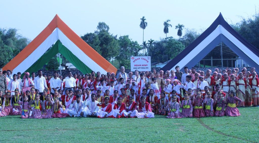 भारतीय सेना की स्पीयर कोर ने ऊपरी असम में लोगों के साथ रंगाली बिहू मनाया ।