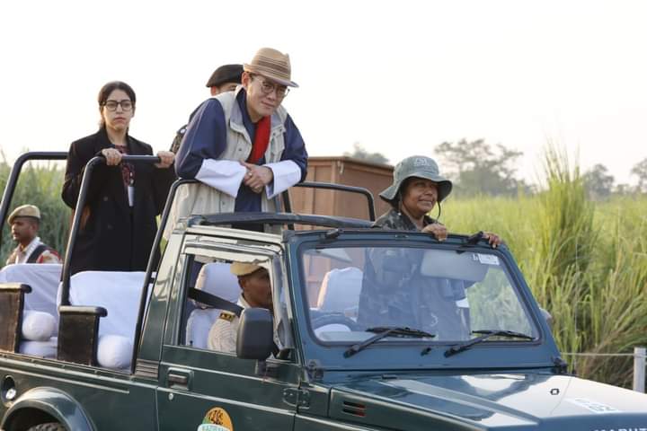 गोलाघाट (असम), 05 नवंबर (हि.स.)। भूटान के राजा जिग्मे खेसर नामग्याल वांग्चुक के सम्मान में काजीरंगा में विभिन्न कार्यक्रम आयोजित किए गए। आज दी गई जानकारी के अनुसार राजा ने काजीरंगा राष्ट्रीय उद्यान के विभिन्न हिस्सों का दौरा किया।ज्ञात हो कि काजीरंगा राष्ट्रीय उद्यान यूनेस्को की विश्व धरोहर स्थल है, जो एक सींग वाले भारतीय गैंडों की दुनिया की सबसे बड़ी आबादी का बसेरा है। राजा भारत की आधिकारिक तीन दिवसीय यात्रा पर गुवाहाटी 3 नवंबर को पहुंचे थे। यात्रा के पहले चरण में राजा का असम में गर्मजोशी से स्वागत किया गया।असम के मुख्यमंत्री डॉ हिमंत बिस्व सरमा ने राजा के सम्मान में एक सांस्कृतिक संध्या और रात्रिभोज का आयोजन किया।