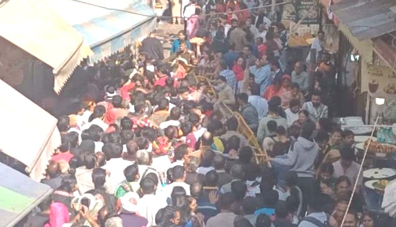दूसरी तरफ दिन भर महिला श्रद्धालुओं की भीड़ के बीच हालत खराब होती रही. मंदिर दर्शन के दौरान दिल्ली से आईं निकिता पुत्री मनोज भीड़ में बुरी रह फंस गईं. घबराहट के कारण वह बेहोश हो गईं. इसके अलावा कोलकाता निवासी वृद्धा गायत्री और उनकी पुत्री मौनी भी बेहोश हो गईं. तीनों को मंदिर पर मौजूद टीम ने उपचार दिया, जिसके बाद उनकी हालत में सुधार हुआ. शाम को दर्शन के दौरान हापुड़ की तृषा शर्मा पुत्री संजय शर्मा और शीतल पत्नी पिंटू की तबीयत भी भीड़ के चलते बिगड़ गई. चक्कर आने से दोनों गिर गईं. उन्हें भी उपचार देने के बाद वापस भेजा गया.