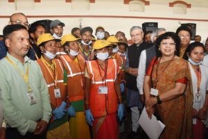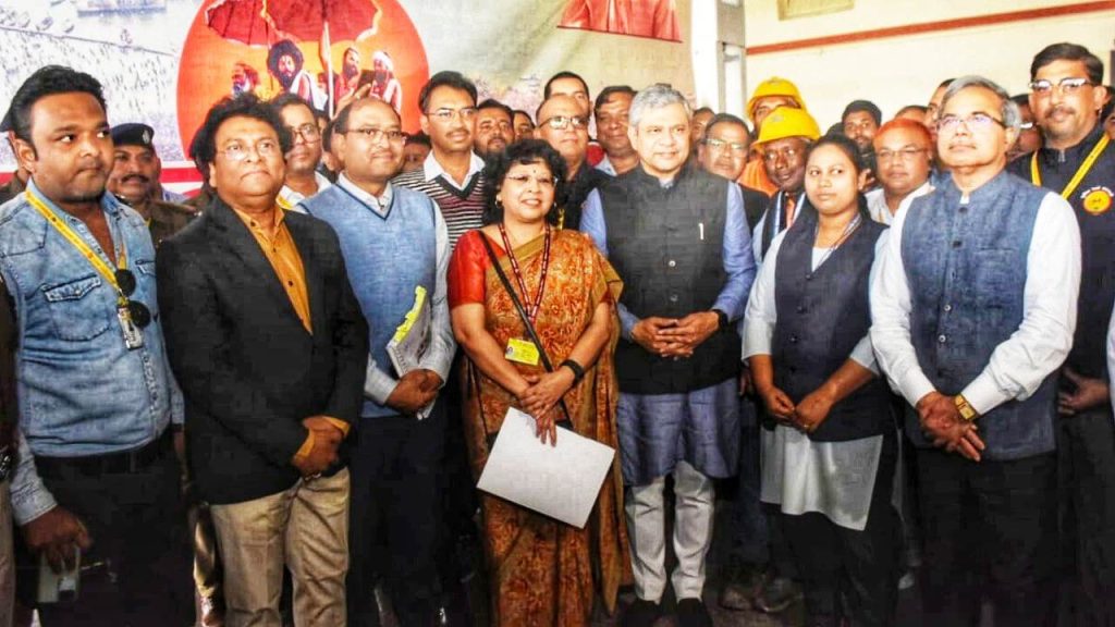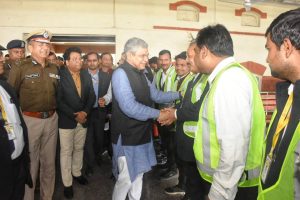 प्रयागराज रामबाग स्टेशन पर कर्मचारियों का उत्साहवर्धन करते रेल मंत्री श्री अश्विनी वैष्णव
