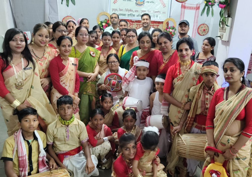 दुमदुमा 27 अप्रैल :– दुमदुमा मारवाड़ी युवा मंच प्रगति शाखा ने आज दुमदुमा पौर सभा कार्यालय प्रांगण में प्रगति शाखा की लाइब्रेरी में बिहू मनाया । प्रगति शाखा कि सदस्याओं ने आज दोपहर चार बजे से दुमदुमा पौर सभा कार्यालय के प्रेक्षागृह में दुमदुमा पौर सभा की सभानेत्री कांता भट्टाचार्य सहित सभी वार्डों के सदस्यों एवं कर्मचारियों को झांपी लगा कर अभिनन्दन किया गया । इसके बाद छोटे छोटे बच्चों ने ढोल के साथ बिहू नृत्य किया । साथ ही अनेक युवतियों एवं महिलाओं ने भी बिहू नृत्य पेश किया इस दौरान पौर सभा पार्षदों तथा कर्मचारियों बिहू नृत्य कर कार्यक्रम में समा बांधा ।पौर सभा की सभानेत्री कांता भट्टाचार्यजी ने कहा कि मायुमं प्रगति शाखा का यह कदम सराहनीय है और नगर समिति इस कार्य के लिए शाखा का आभार प्रकट किया । इस दौरान प्रगति शाखा की अध्यक्षा स्नेहा अग्रवाल , सचिव अनु मोदी , कोषाध्यक्ष हर्षा मोदी सहित अनेक सदस्याएं व समाज के छोटे छोटे बच्चे असमिया जातीय परिधान में नजर आये । इस कार्यक्रम का संचालन संतोष जाजू द्वारा की गई ।