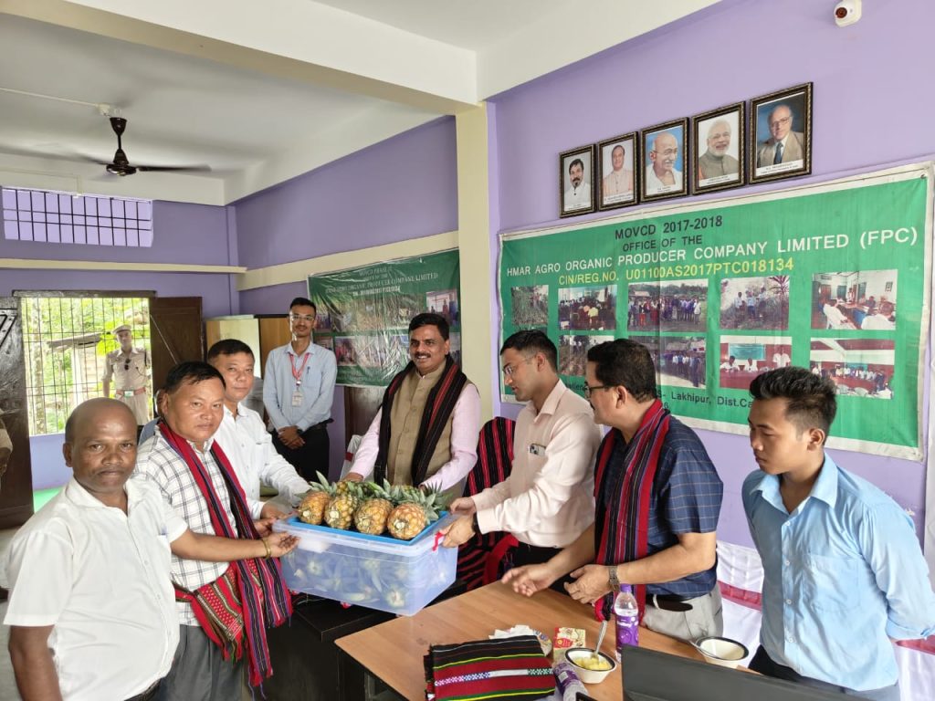 डॉ. कोटा ने अपने दौरे की शुरुआत लखीपुर के मार्खावलीन के विशाल अनानास बागानों से की, जहाँ उन्होंने खेती के तरीकों को प्रत्यक्ष रूप से देखा, उत्पादकों से बातचीत की और क्षेत्र में अनानास की खेती के अवसरों और चुनौतियों की समीक्षा की। किसानों की आय बढ़ाने के लिए मूल्य संवर्धन और मज़बूत विपणन माध्यमों की आवश्यकता पर ज़ोर देते हुए, उन्होंने हितधारकों को पीक सीज़न के बाद भी निरंतर, उच्च-गुणवत्ता वाले उत्पादन का लक्ष्य रखने के लिए प्रोत्साहित किया। हमार एग्रो ऑर्गेनिक प्रोड्यूसर कंपनी लिमिटेड के कार्यालय में, उन्होंने निदेशक मंडल और किसान उत्पादक कंपनी के सदस्यों से मुलाकात की और उनसे जिला प्रशासन और प्रतिष्ठित कंपनियों के साथ मिलकर कछार, आसपास के जिलों और पड़ोसी राज्यों से उपज एकत्र करके एक प्रसंस्करण इकाई स्थापित करने का आग्रह किया।