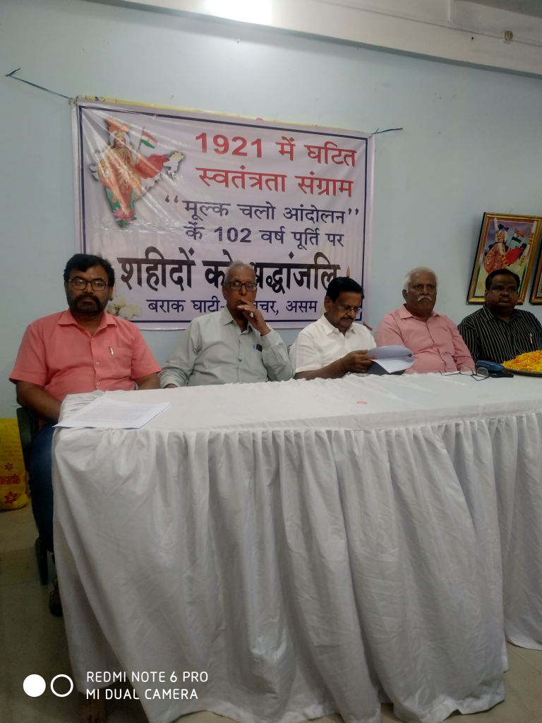 सभा का संचालन दिलीप कुमार ने किया। समाजसेवी उदयशंकर गोस्वामी की अध्यक्षता में शहीदों को मौन रहकर तथा पुष्पांजलि देकर याद किया गया। गोस्वामी ने कहा कि हम संज्ञान लेकर इतिहास लिखवायैंगें। अवधेश कुमार सिंह बाबुल नारायण कानू ने भी संबोधित किया। कानू ने बताया कि बराक चाय श्रमिक संगठन के महासचिव राजदीप ग्वाला ने सभी बागानों में श्रद्धांजलि सभा करने का निर्देश दिया है।