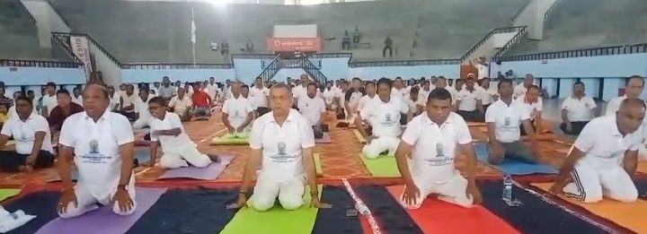 “योग फॉर वन अर्थ, वन हेल्थ”—इस प्रेरणादायी संदेश को केंद्र में রেখে शिलचर में उल्लासपूर्ण वातावरण में 11वां अंतरराष्ट्रीय योग दिवस मनाया गया। शुक्रवार सुबह इंडिया क्लब इंडोर स्टेडियम में आयोजित इस भव्य कार्यक्रम का आयोजन राष्ट्रीय आयुष मिशन, असम और कछार जिला प्रशासन के संयुक्त तत्वावधान में किया गया। कार्यक्रम में बड़ी संख्या में योग प्रेमी, छात्र-छात्राएं, सरकारी अधिकारी एवं गणमान्य नागरिकों ने भाग लिया।