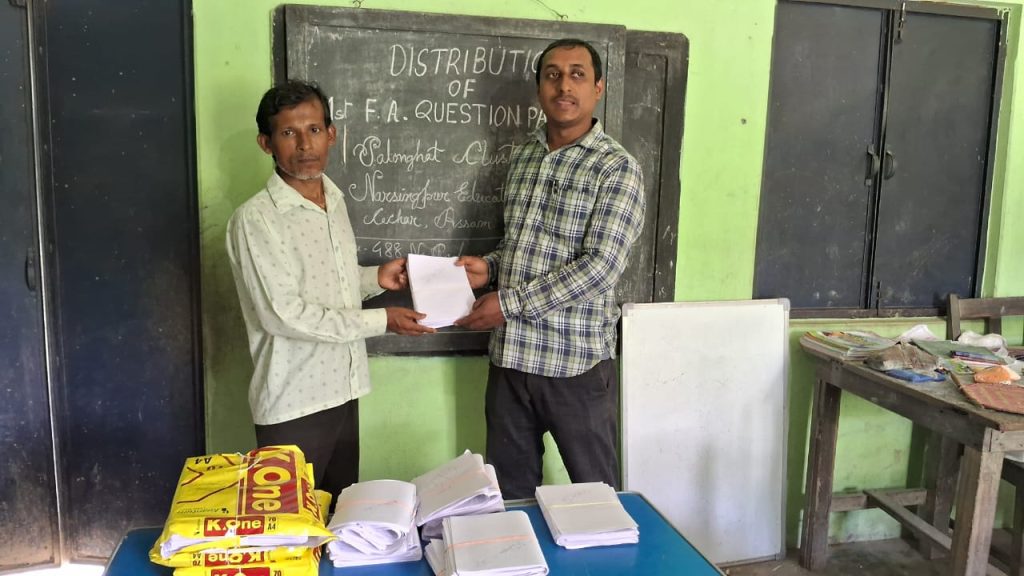 धोलाई, 25 जून: मंगलवार २४ जून को काछार जिले के नरसिंहपुर शिक्षा खंड के अंतर्गत पालंघाट क्लस्टर में प्रथम रचनात्मक मूल्यांकन २०२५ – २६ शैक्षणिक वर्ष के प्रश्नपत्र और ओएमआर शीट का समुचित वितरण किया गया। उक्त क्लस्टर के कुल १२ विद्यालयों के प्रधानाध्यापक समय पर क्लस्टर के केंद्रीय विद्यालय पहुंचे। सीआरसीसी प्रणय पाल ने सभी को परीक्षा के नियम और सुची की जानकारी दी। इसके बाद उन्होंने सभी को प्रश्नपत्र के पैकेट और ओएमआर शीट वितरित की। प्रश्नपत्र तैयार करने में क्लस्टर के सीआरसीसी प्रणय पाल की प्रमुख भूमिका रही। उन्होंने उक्त क्लस्टर के विभिन्न शिक्षकों की मदद से प्रश्नपत्र तैयार करने का कार्य पूरा किया। विद्यार्थियों की योग्यता, भविष्य की उच्च कक्षाओं और जॉब प्लेसमेंट (नौकरी) परीक्षाओं को ध्यान में रखते हुए प्रश्नपत्र के कुल ५० अंकों में १० अंक के बहुविकल्पीय प्रश्न (एमसीक्यू) शामिल किए गए हैं। शेष ४० अंक बहुत ही छोटे, संक्षिप्त और निबंधात्मक प्रकार के प्रश्न हैं। प्रश्न ज्ञानात्मक, संज्ञानात्मक, व्यावहारिक और कौशल आधारित प्रकार के हैं। १० अंकों के एमसीक्यूस प्रश्नों को शामिल करने का मुख्य उद्देश्य यह है कि छात्रों को प्रारंभिक स्तर से ही ओएमआर भरने की आदत हो जाए और भविष्य में किसी भी परीक्षा में ओएमआर भरने में किसी भी बाधा का सामना न करना पड़े। इस परीक्षा में, प्रत्येक छात्र मुद्रित प्रश्न को हाथ में लेकर परीक्षा देगा। उन्होंने परीक्षा के माहौल को सुंदर बनाने के लिए ऐसी शानदार पहल की है। इस तरह के क्लस्टर आधारित प्रश्न पत्र तैयार करने और परीक्षा लेने की प्रक्रिया उक्त क्लस्टर में लंबे समय से चल रही है। यह ध्यान देने वाली बात है कि इन प्रश्न पत्रों को तैयार करने के लिए छात्रों से कोई परीक्षा शुल्क नहीं लिया जाता है। सीआरसीसी प्रणय पाल ने प्रश्नावली की सुचारू तैयारी और वितरण के लिए इस प्रक्रिया में प्रत्यक्ष और अप्रत्यक्ष रूप से शामिल सभी लोगों के प्रति आभार व्यक्त किया