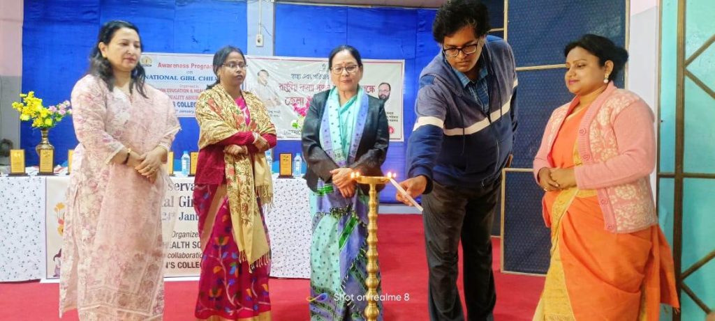 24 जनवरी 2024 को कछार जिले में राष्ट्रीय बालिका दिवस के जश्न के अवसर पर, एनसीसी गर्ल्स कैडेट, आशा और जिले के अन्य स्वास्थ्य अधिकारियों और कर्मचारियों की एक रैली आयोजित की गई है। रैली को डा . सुमोना नाइडिंग ने हरी झंडी दिखाकर रवाना किया महिला कॉलेज, सिलचर में एक जागरूकता बैठक आयोजित की गई है। जो गणमान्य व्यक्ति कुर्सी संभाल रहे थे, डॉ. सुमोना नायडिंग, अतिरिक्त सीएम एवं एचओ (एफडब्ल्यू), कछार, डॉ. संघमित्रा देबनाथ, प्रभारी प्रिंसिपल महिला कॉलेज, सिलचर, डॉ. अजंता दास, प्रोफेसर महिला कॉलेज, डॉ. अरेथदेव कर, एसएमओ, डब्ल्यूएचओ, डॉ. सुब्रत नंदी, डीएलएसी सदस्य और राहुल घोष, डीपीएम, एनएचएम, कछार। सभी गणमान्य अतिथियों ने राष्ट्रीय बालिका दिवस पर अपने विचार व्यक्त किये तथा अपना बहुमूल्य भाषण भी दिया। उसके बाद डॉ. अजंता दास द्वारा महिला महाविद्यालय की छात्राओं के बीच एक प्रश्नोत्तरी प्रतियोगिता आयोजित की गई और तदनुसार विजेताओं के बीच पुरस्कार वितरित किए गए। इस अवसर पर विभिन्न क्षेत्रों में उपलब्धि हासिल करने वाली 13 (तेरह) लड़कियों को भी सम्मानित किया गया। धन्यवाद ज्ञापन बप्पा देब, उप डीई एवं एमओ, डीएफडब्ल्यूबी, कछार द्वारा दिया गया। पूरे कार्यक्रम का संचालन नरसिंगपुर एमपीएचसी के महामहिम संजीब दास ने किया