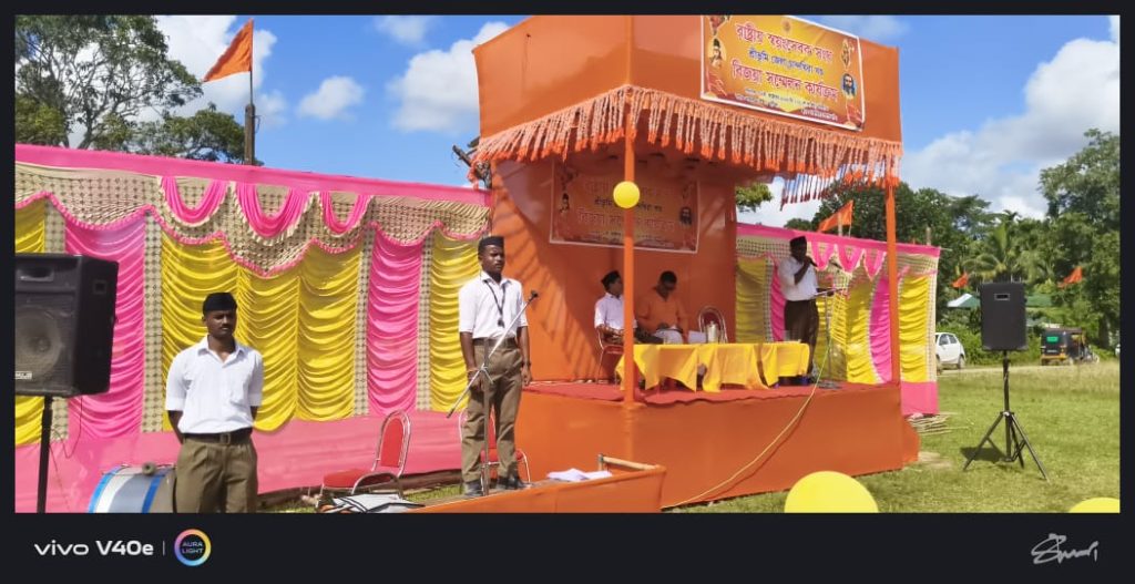 राष्ट्रीय स्वयंसेवक संघ के शताब्दी वर्ष के उपलक्ष्य में रविवार को श्रीभूमि जिले के चंदखीरा खंड में रंगारंग एवं अनुशासित विजया सम्मेलन एवं पथ संचलन का आयोजन किया गया। पथ संचलन चंदखीरा खेल मैदान से शुरू होकर स्वामी विवेकानंद महाविद्यालय एवं चंदखीरा रेलवे स्टेशन होते हुए वापस मैदान में समाप्त हुआ। संघ वेश में, लाठी लेकर और वाद्य यंत्र बजाते हुए सौ से अधिक स्वयंसेवकों ने इस संचलन में भाग लिया। कार्यक्रम के मुख्य अतिथि स्वामी विवेकानंद महाविद्यालय के प्राचार्य डॉ. सुभाष सिन्हा ने कहा, “संघ का अनुशासन एवं समाज सेवा की गतिविधियाँ युवाओं के लिए एक उज्ज्वल उदाहरण हैं। इसी आदर्श पर चलकर राष्ट्र एवं समाज का सर्वांगीण विकास संभव है।” मुख्य वक्ता के रूप में आरएसएस के कर्मकुंज विभाग प्रमुख अलक पाल ने संघ के शताब्दी वर्ष की गौरवशाली गाथा पर प्रकाश डाला और ‘पंच परिवर्तन’ की चर्चा की। राणा तेलेंगा दिन भर की गतिविधियों के प्रभारी मुख्य शिक्षक थे। इस अवसर पर संघ के श्रीभूमि जिला परिवर्तन प्रमुख शिवब्रत शर्मा चौधरी, संघ के शारीरिक एवं सामाजिक कार्यकर्ता सुजॉय पाल, चंदखिरा खंड कार्यवाह जयगणेश सालिया, सद्भावना टोली के सामाजिक कार्यकर्ता राजेंद्र भारद्वाज, खंड बौद्धिक प्रमुख संदीप गोस्वामी, खंड प्रशासनिक प्रमुख पार्थ वर्धन सहित संघ के विभिन्न स्तर के कार्यकर्ता उपस्थित थे। इस पथ संचलन के दौरान चारों ओर देशभक्ति और एकता का उत्साह था। भीषण गर्मी की परवाह न करते हुए, स्थानीय निवासी सड़क के दोनों ओर और पेड़ों की छाया में खड़े होकर स्वयंसेवकों का अभिनंदन कर रहे थे, जिसने इस आयोजन को और भी खास बना दिया।