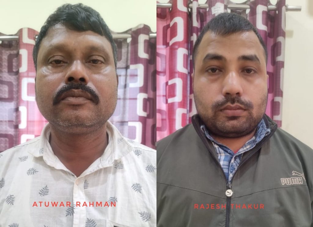 पुलिस ने गिरफ्तार किए गए लोगों की पहचान अतुवर रहमान (48) के तौर पर की है, जो धुबरी जिले के बिलासीपारा पुलिस स्टेशन के लखीगंज के रहने वाले फैजुल हक का बेटा है (अभी लेजई में रहता है), और राजेश ठाकुर (32) जो बरबरुआ पुलिस स्टेशन के लेजई गांव के रमा कांत ठाकुर का बेटा है।